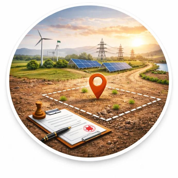 Identification, evaluation and consolidation of wind and solar project land aligned with evacuation capacity, engineering feasibility, district realities and long-term development requirements.