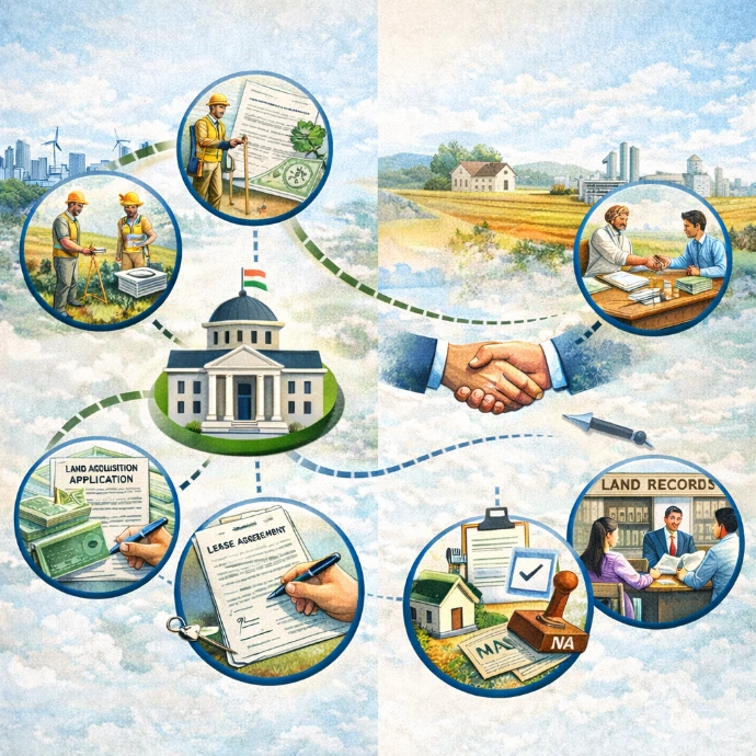 Our team manages the full acquisition lifecycle for private land parcel's Title verification coordination, Ownership risk assessment, Aggregation structuring, Industrial permission facilitation, Non-agricultural (NA) conversion process support